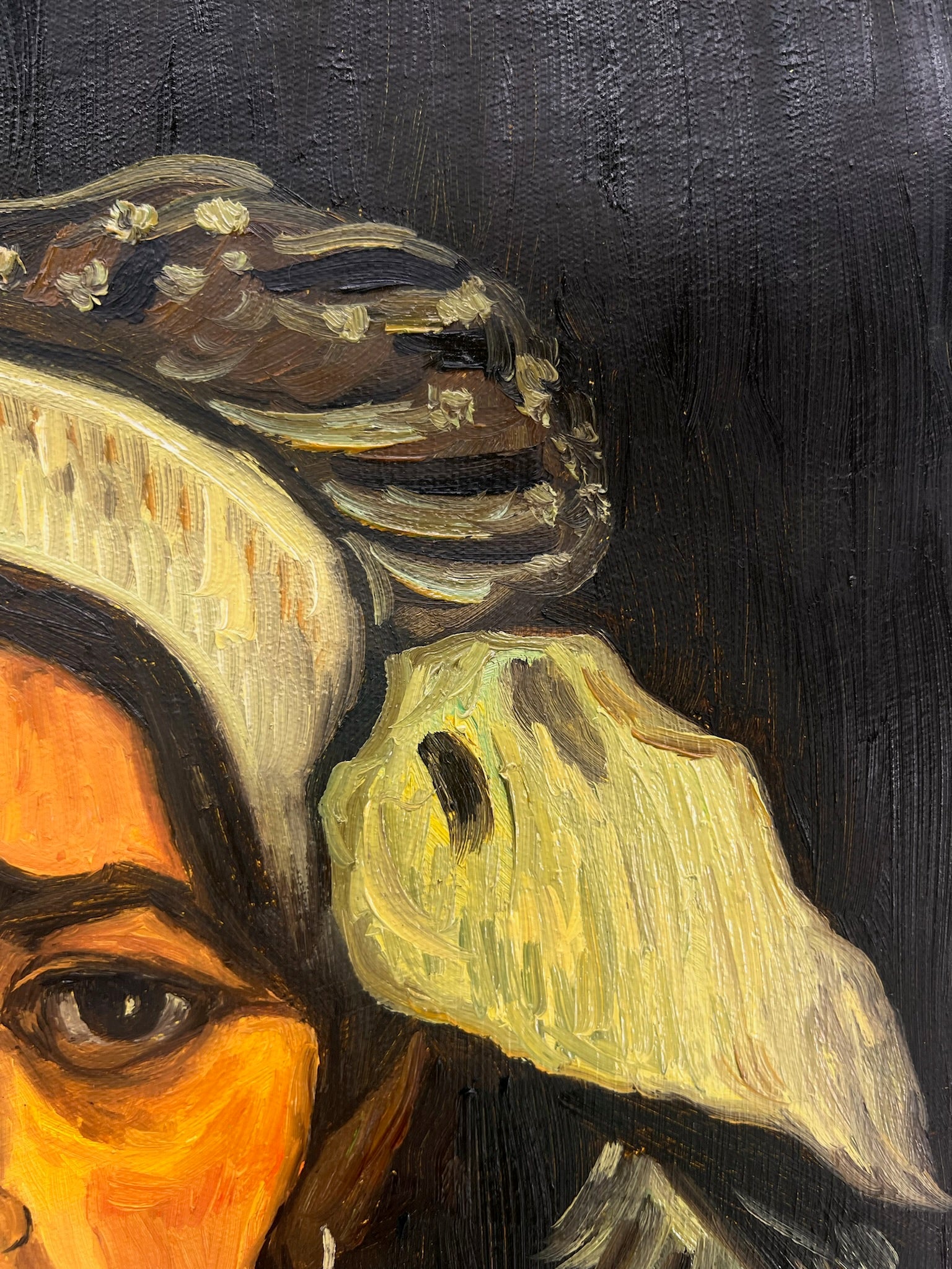 Hoofd van een vrouw (naar Vincent van Gogh) – Handgeschilderd olieverfschilderij op canvas (42,7 × 33,5 cm)